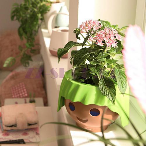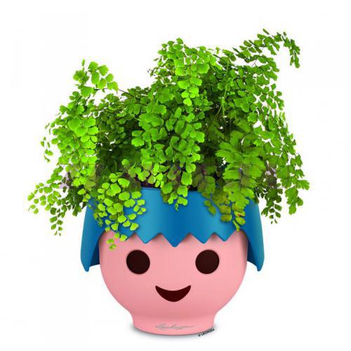 Благодаря системе фитильного автополива, свежие растения могут быть легко помещены в это кашпо без необходимости полноценной пересадки! Вставленный в дно родного горшка фитиль равномерно поставляет влагу к корням. Большие круглые глаза на лице кашпо показывают, сколько воды осталось в емкости. Интерактивные глаза синего цвета означают, что резервуар для воды заполнен целиком. Так дети будут осведомлены об уровне влаги.