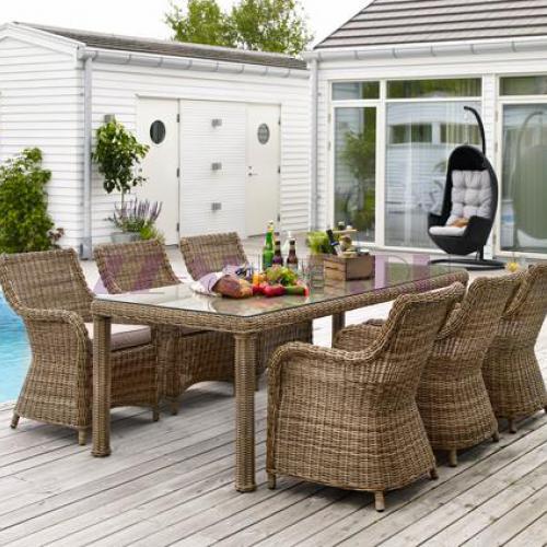 Обеденное кресло Catherine 5541-62-23 поставляется с бежевой подушкой, плетение выполнено из 5-мм ротанга коричневого цвета, каркас кресла алюминиевый.