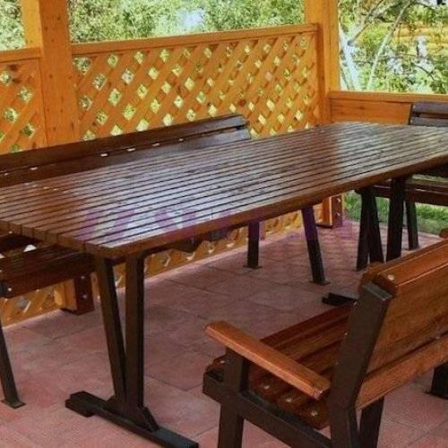 Оборудуйте стол длинными скамейками, вы получите невероятный комфорт и полноценный комплект мебели для отдыха большой компанией.
